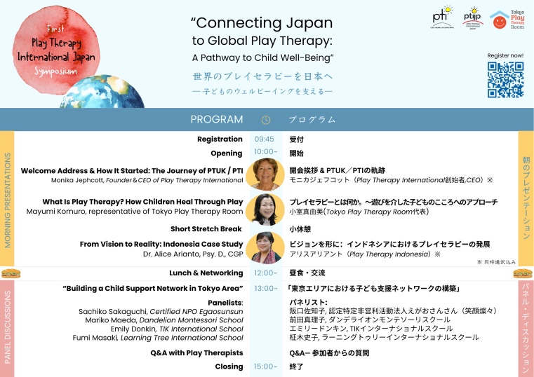 第1回 Play Therapy International Japan シンポジウム開催のお知らせ ― 世界のプレイセラピーを日本へ|子どものウェルビーイングを支える ―